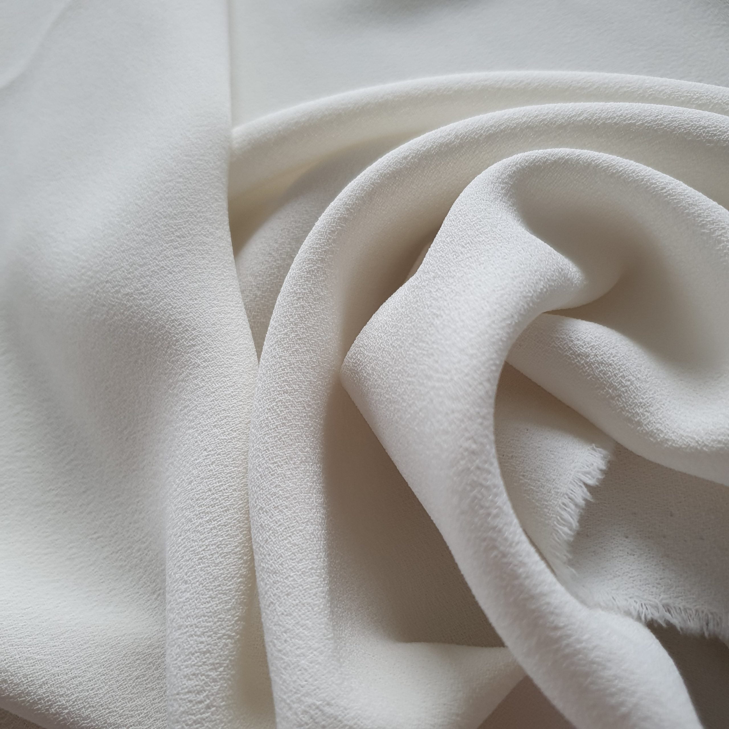 With its crisp yet elegant feel, this crepe sews and constructs effortlessly, making it ideal for a wide range of garments—from modern, lightweight business suiting to cocktail dresses, bridal gowns, and eveningwear. It has no elastane content, but thanks to the structure of the weave, it offers a gentle natural give, providing comfort and movement without the need for stretch.