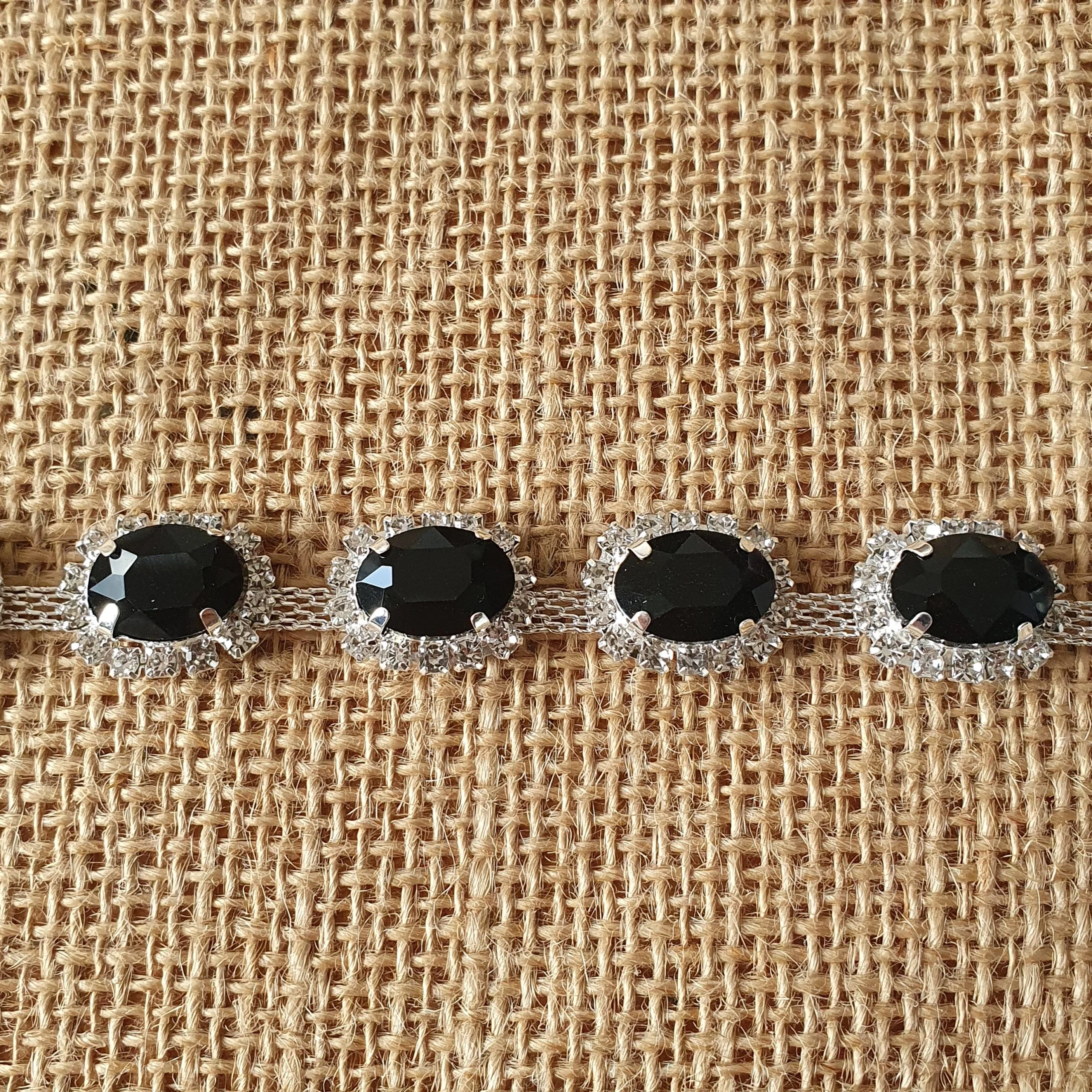 A heavy metal linked chain backing to a crystal stone in either Clear crystal or Black