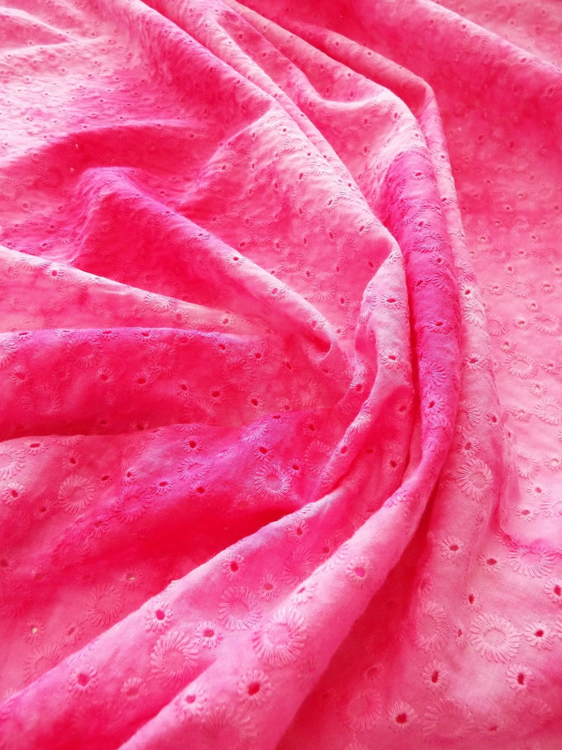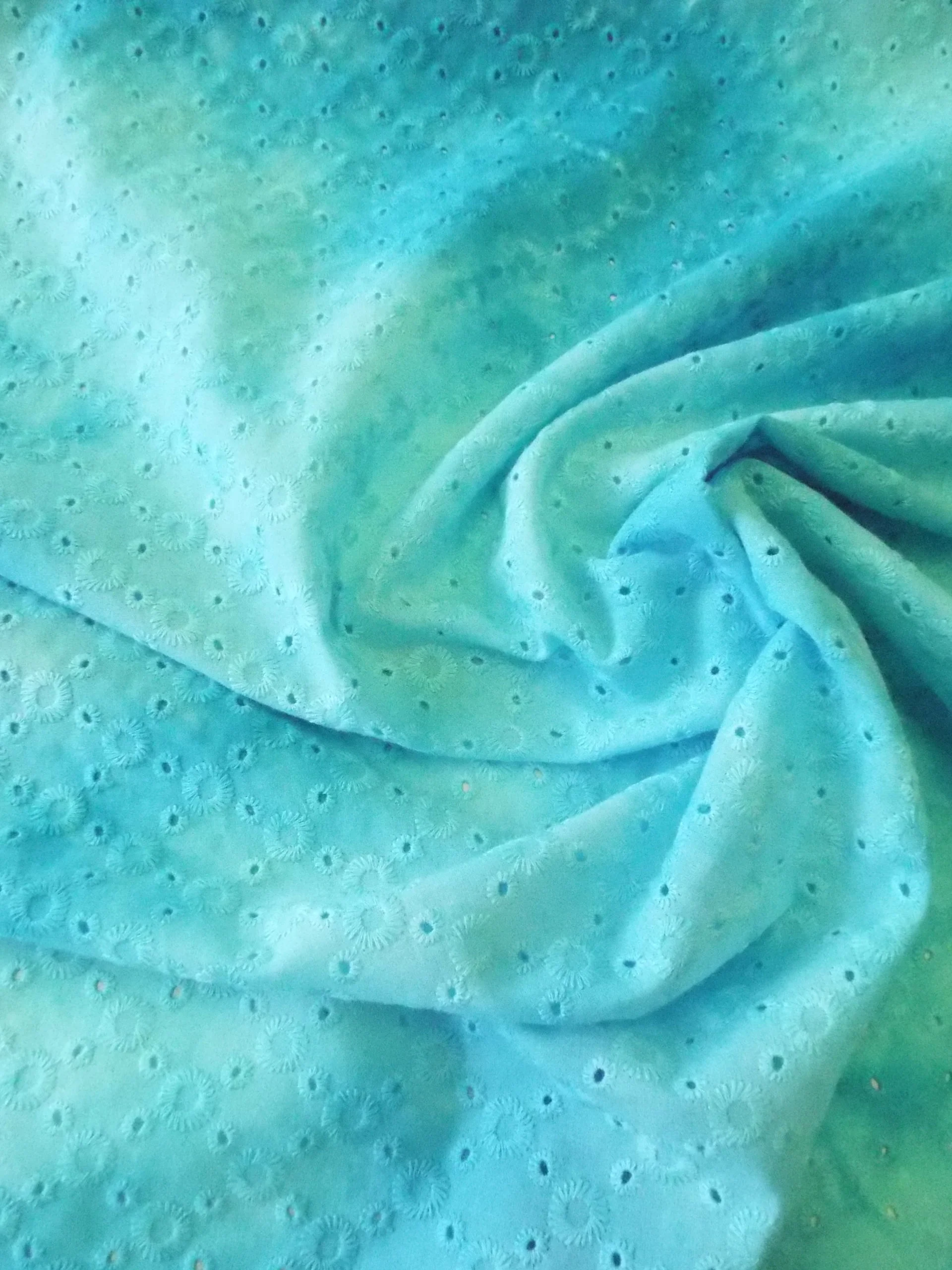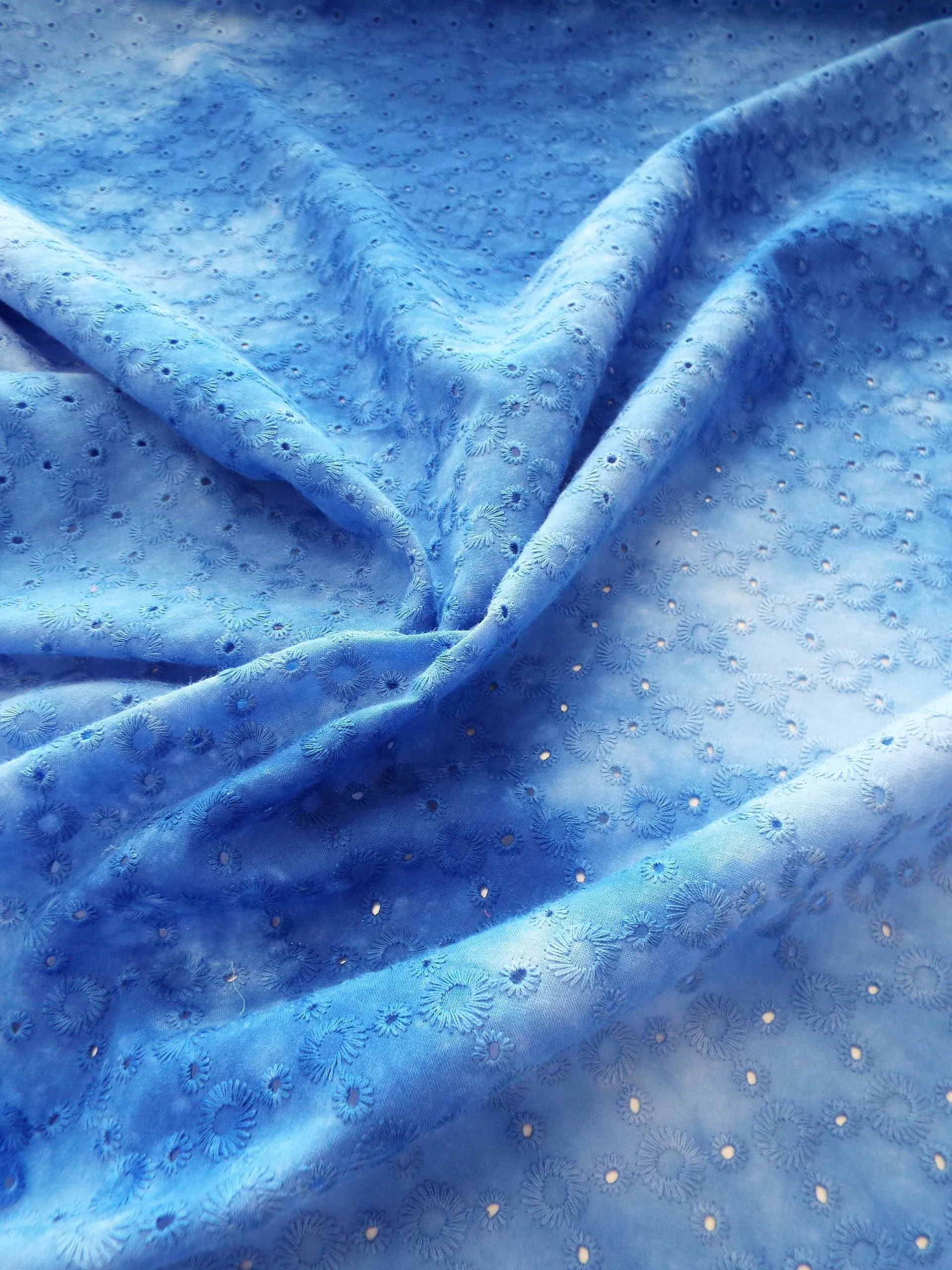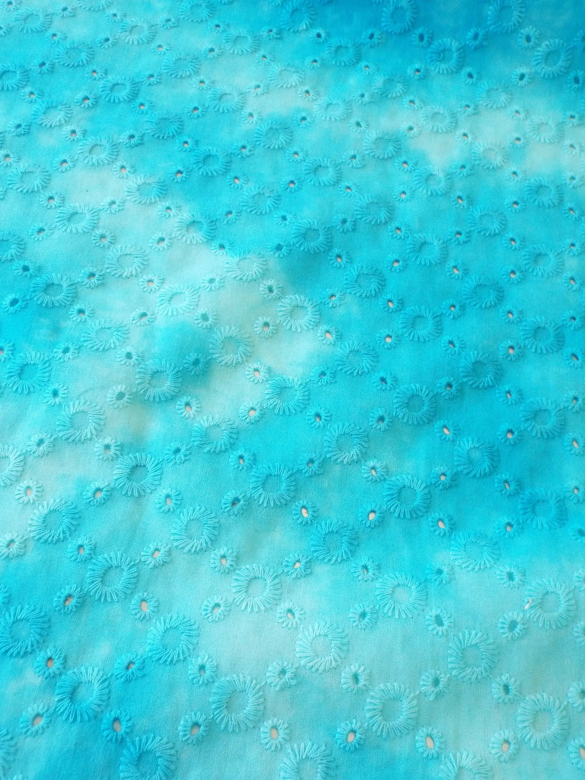 A soft embroidered cotton with the added feature of a tie-dye wash and soft circles of embroidery.