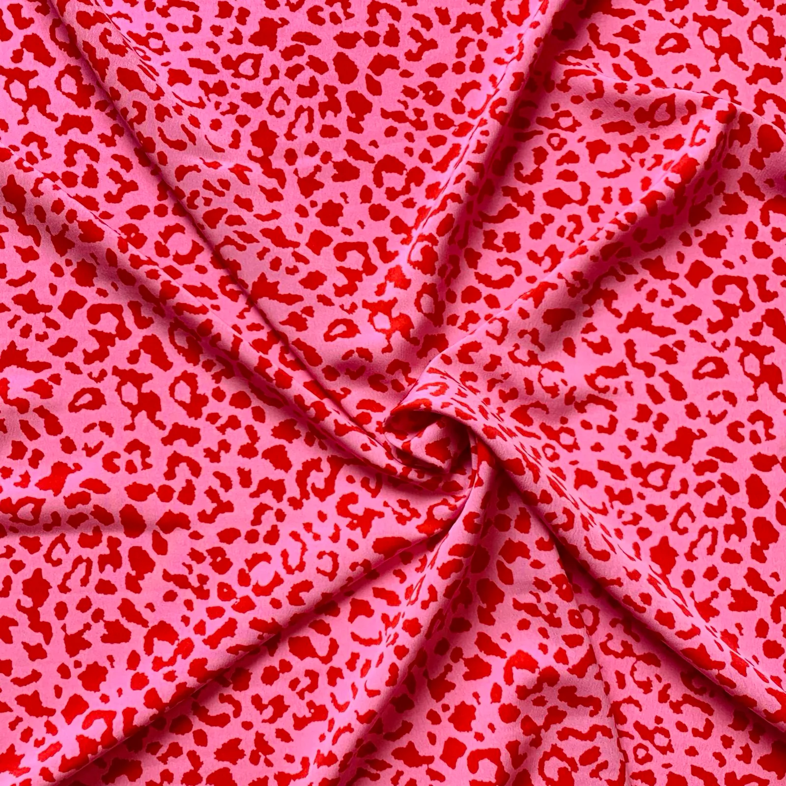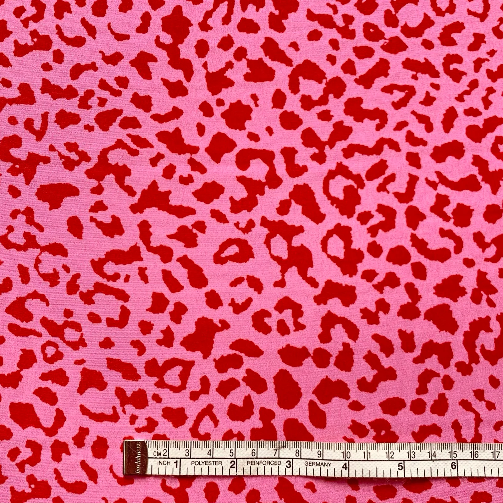 Crepe De Chine abstract animal print in dual tones of Cerise.