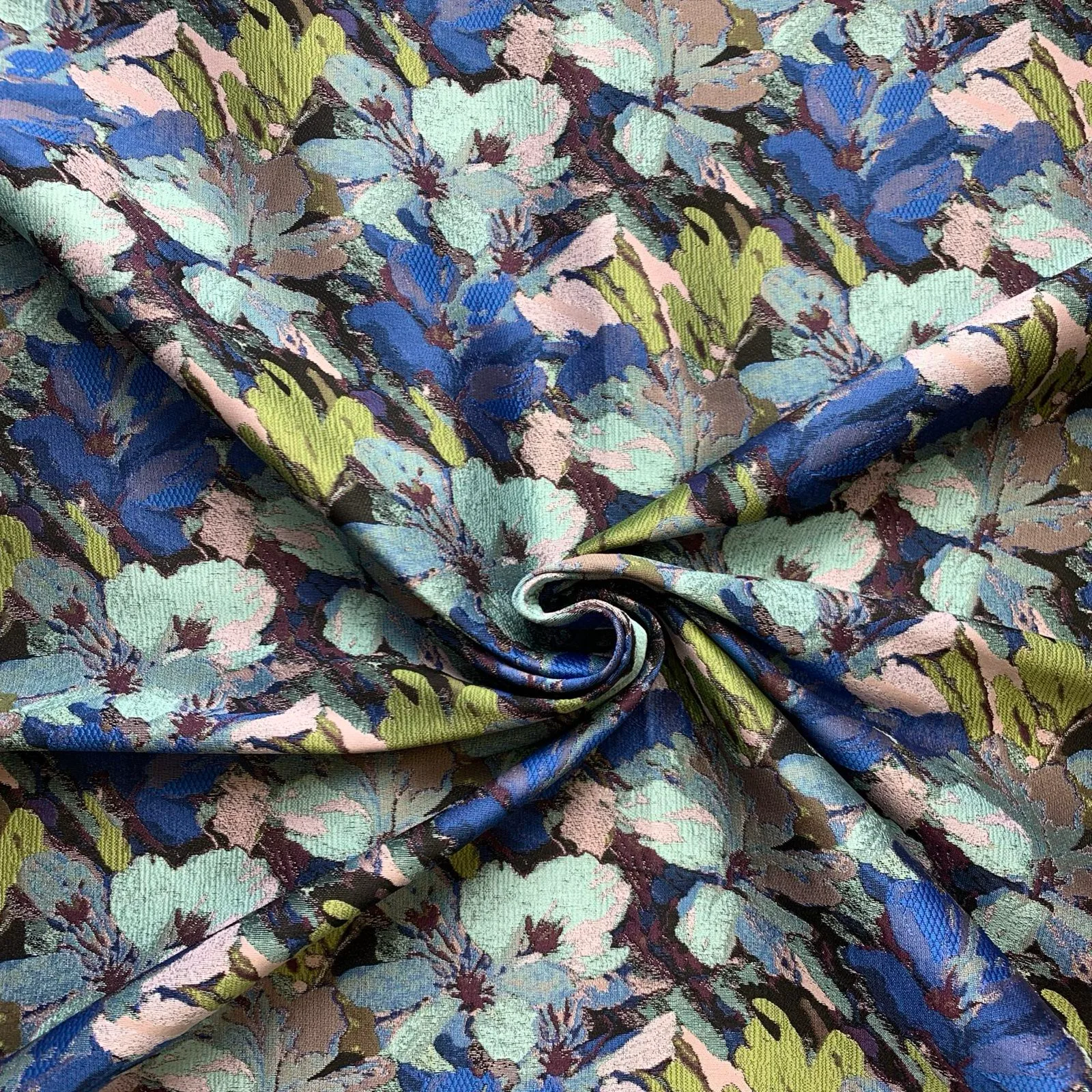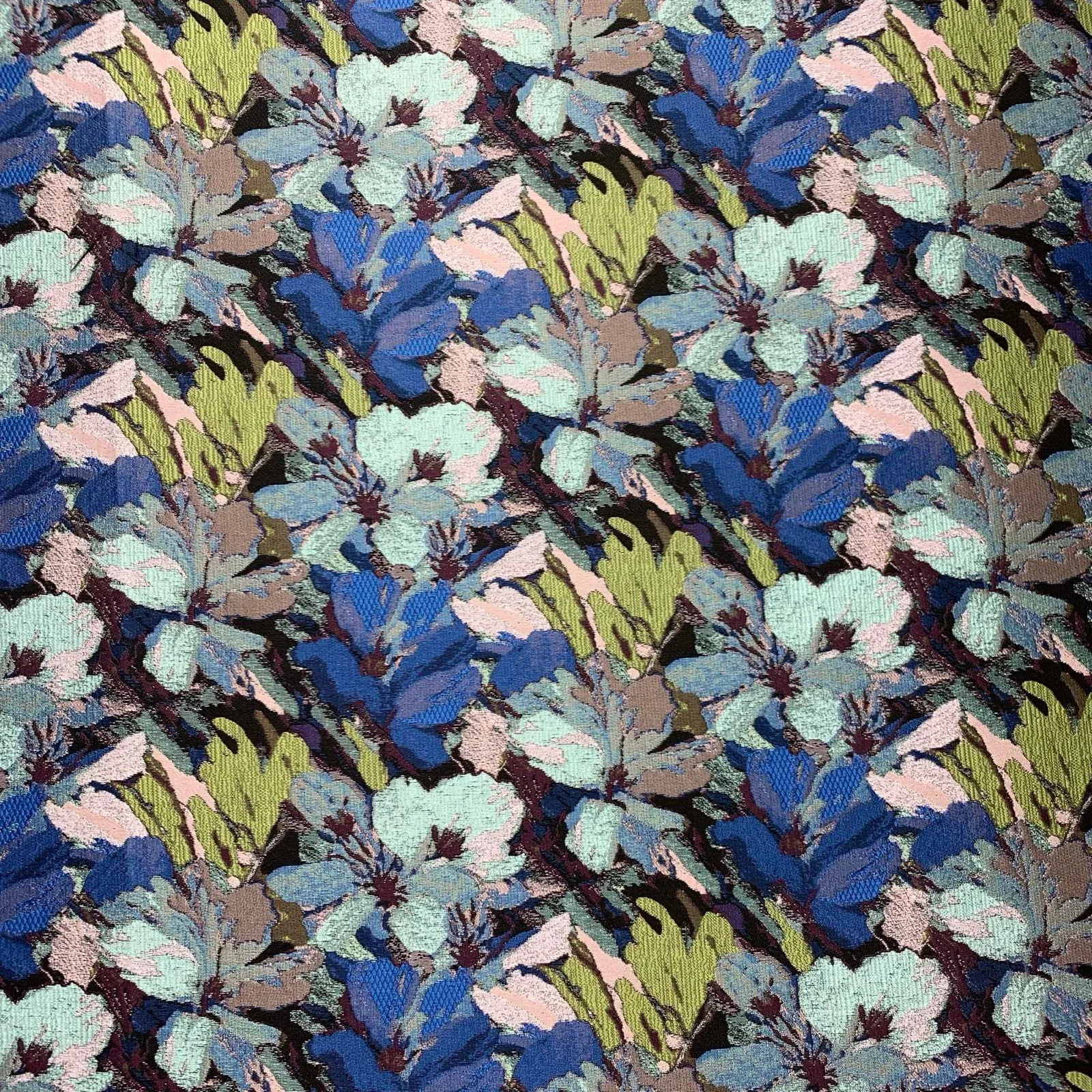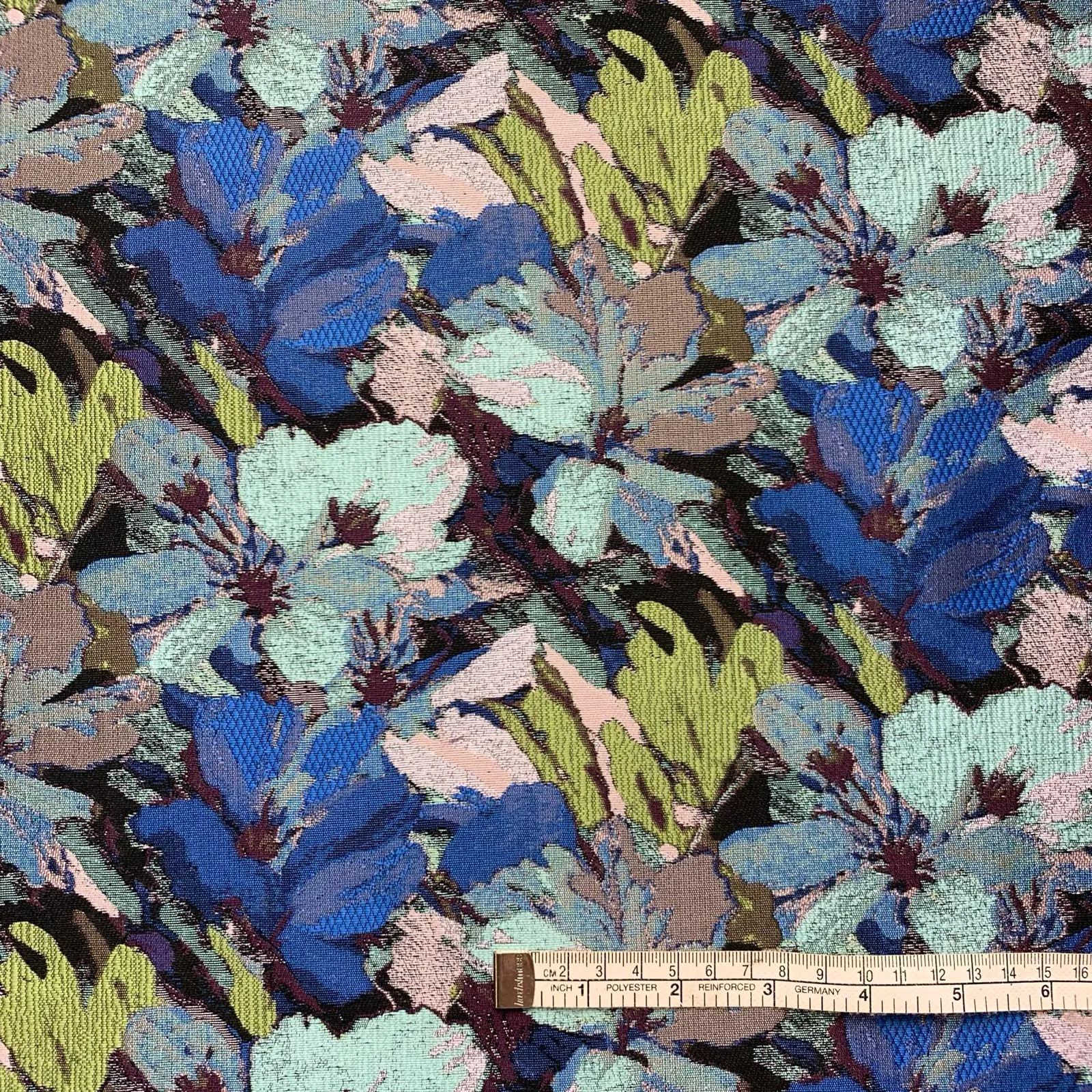 Jacquard Brocade in a beautiful blend of lime,blues,aqua.damson,pinks and black.