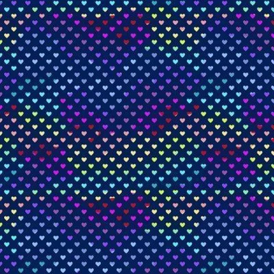 A multi coloured rainbow themed hearts design on a Bright Navy and Black grounds