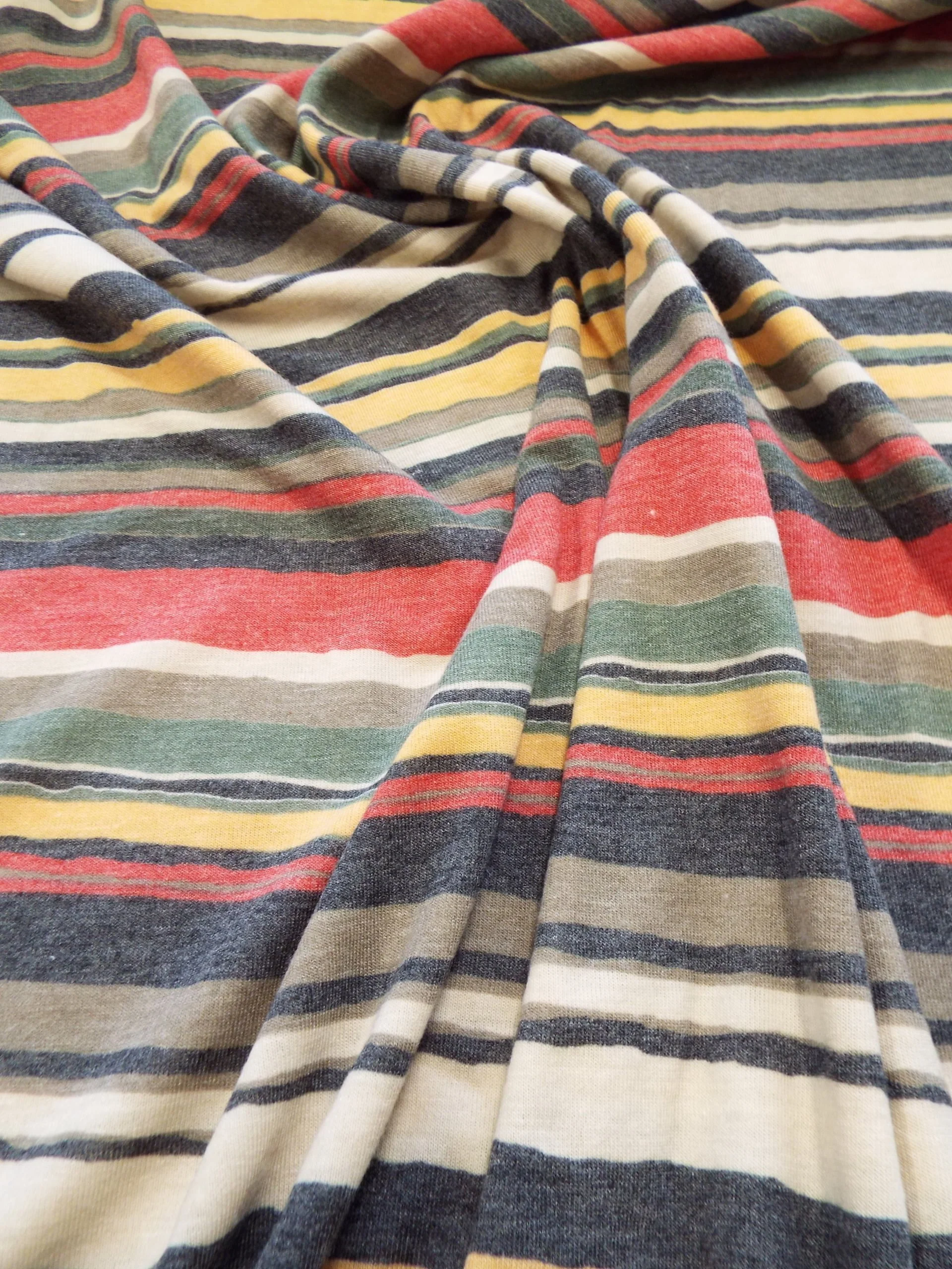 Textured micro jersey stretch in lovely chalked coloured stripe.