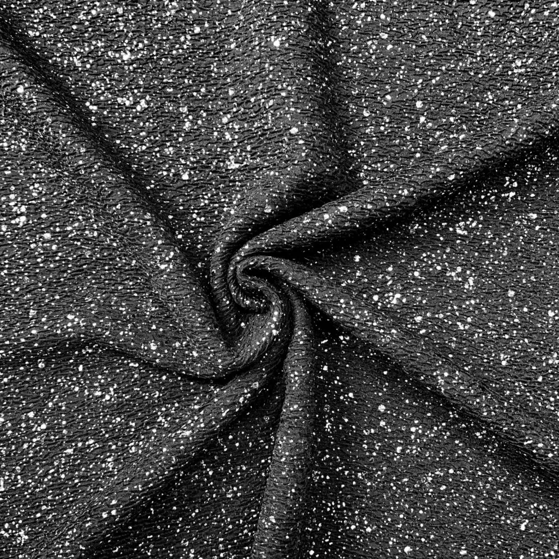 An evening style fabric, a crushed pleated effect with a bright silver sparkle throughout.