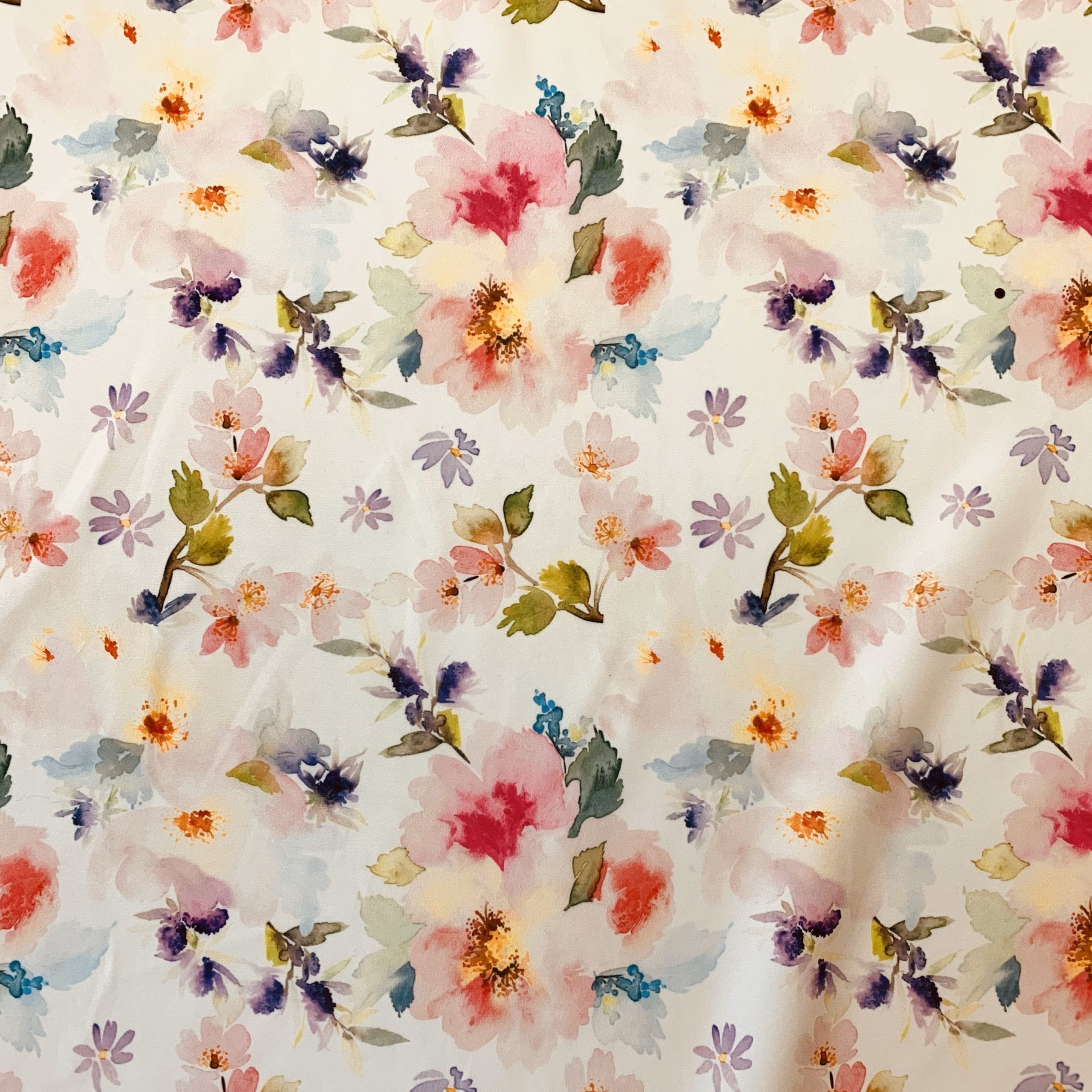 A classic design of a delicate summer pastel floral design of soft Sweet Pea shades all on a Natural Ivory Background.