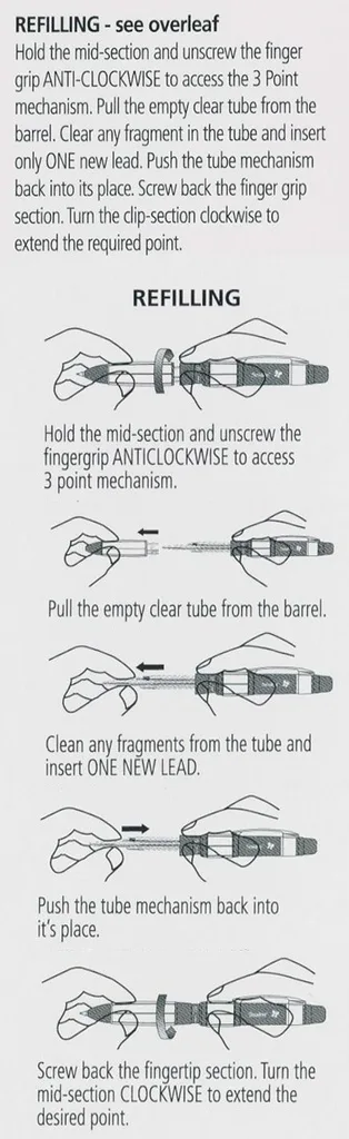 - Pencil comes with three 0.9mm leads: Dark Grey, Pink and White or Black, White, tracer point whichever is available at the time.