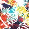 A multi coloured pattern of Fuschia/ Cranberry/ Wine on a Black ground.